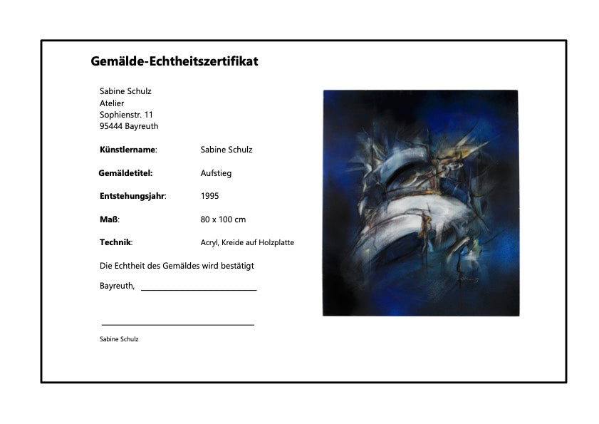 Das Acrylgemälde „Aufstieg“ entfaltet eine eindrucksvolle, abstrakte Bildwelt, die den Betrachter sofort in ihren Bann zieht.