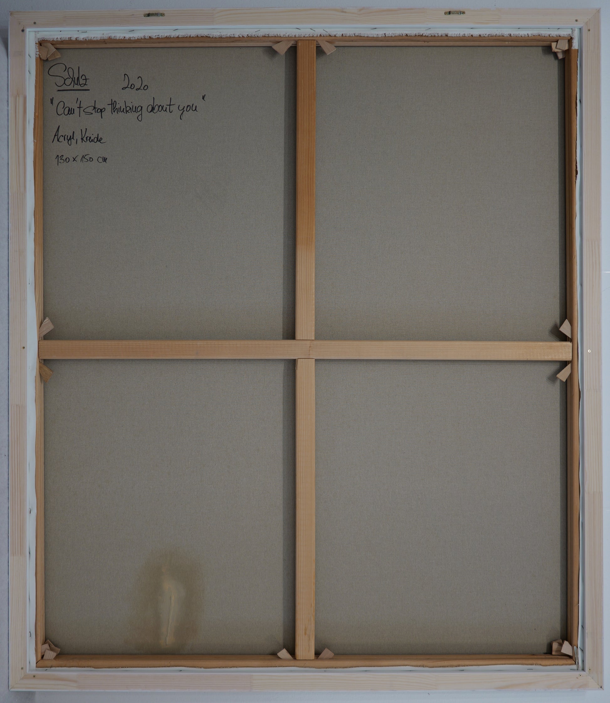 Der Stil ist expressiv und dynamisch, mit sichtbaren Pinselstrichen und Farbspritzern.