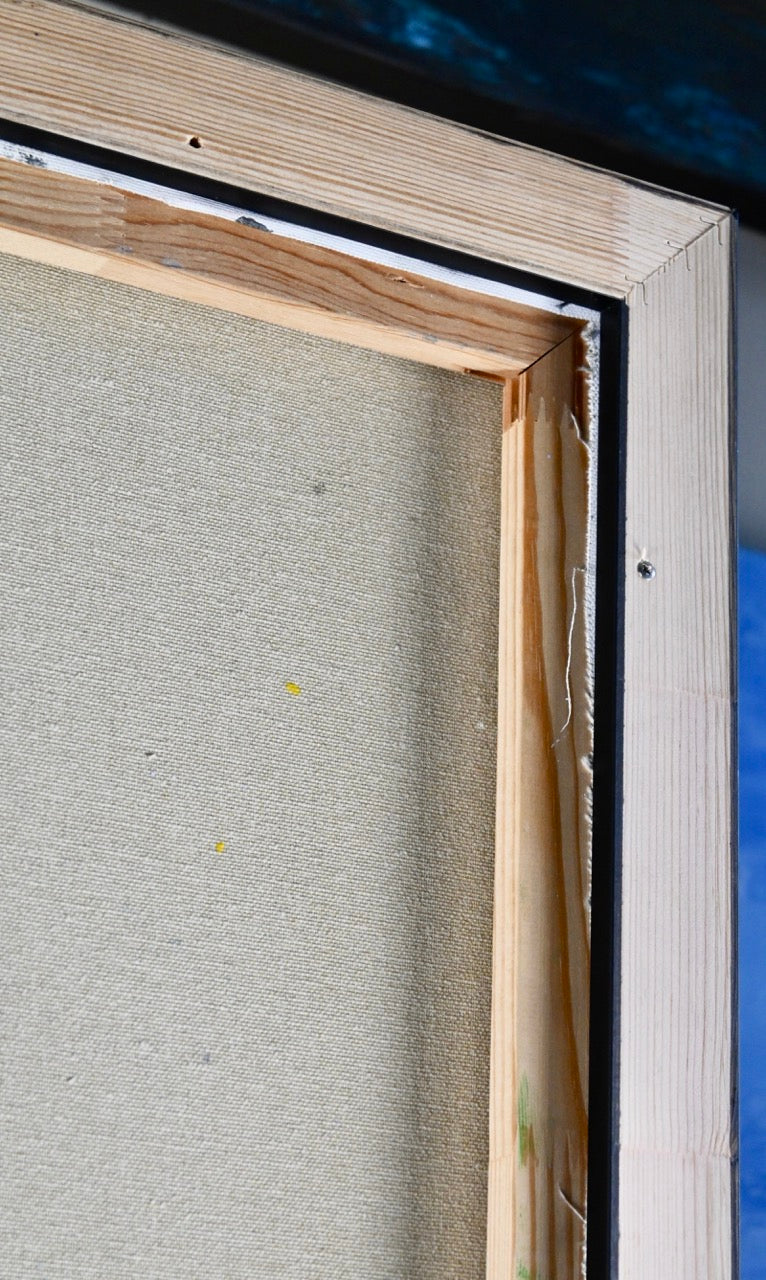 Bild mit Schattenfugenrahmen aus Fichtenholz schwarz und silber lackiert |