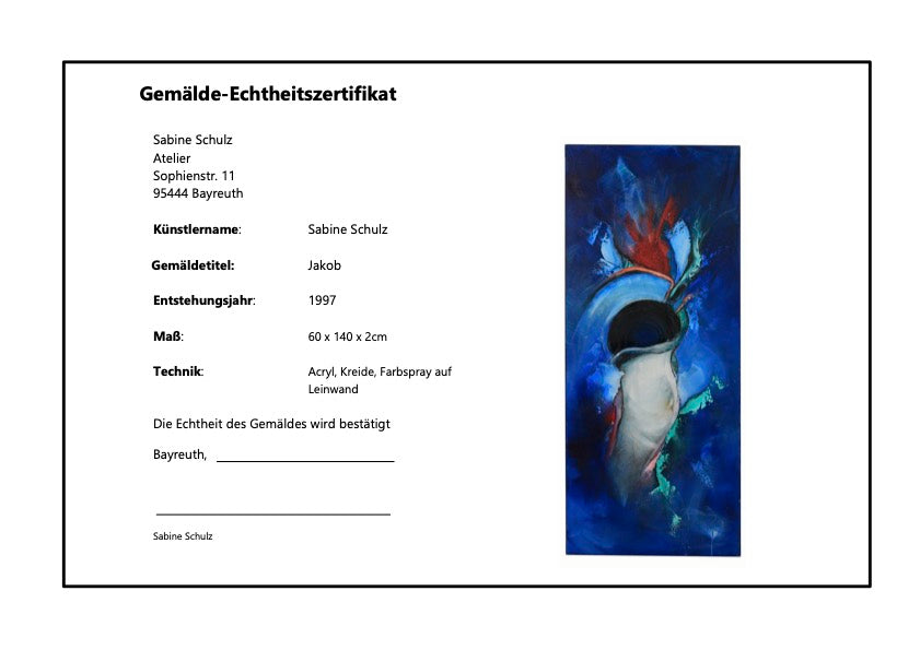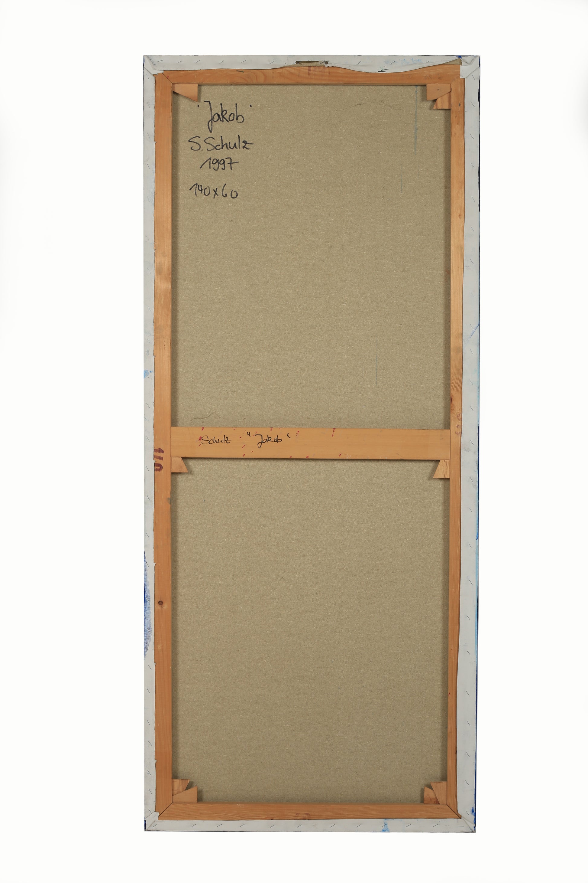 „Jakob“ ist ein Gemälde voller Bewegung, Spannung und Tiefe. Es ist kraftvoll, dynamisch, tanzend – ein Bild, das zugleich geheimnisvoll und klar wirkt. Eine visuelle Komposition zwischen Sammlung und Ausdehnung, zwischen Form und Emotion.