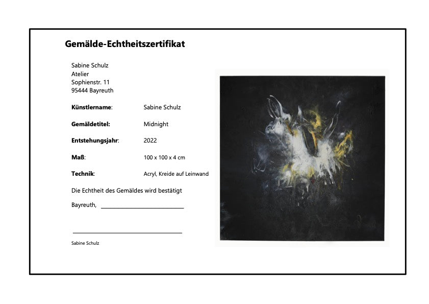 Midnight ist ein Bild der Schwelle. Es verweigert sich der Lesbarkeit und öffnet stattdessen einen Raum, in dem Licht und Dunkelheit nicht Gegensätze sind, sondern ineinander übergehen. Was hier geschieht, geschieht im Inneren – dort, wo etwas noch keinen Namen hat, aber bereits Form annimmt.
