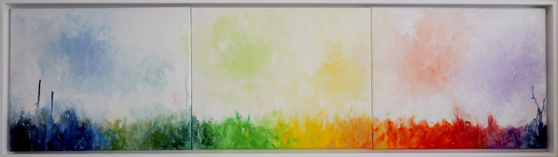 Die drei Teile des Triptychons stehen nicht nebeneinander wie Kapitel, sondern wie unterschiedliche Seiten derselben Wahrheit. Es geht nicht nur um Landschaft, nicht nur um Tageszeiten oder konkrete Szenen, sondern um das, was zwischen den Dingen liegt: die Spannung zwischen Aufbruch und Vergehen, zwischen Wärme und Kühle, zwischen Leuchten und Verschwinden. Farbe wird hier zum Träger eines inneren Lichts – eines Lichts, das weniger gesehen als gespürt wird.