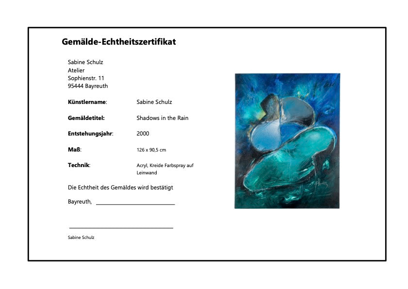 Shadows in the Rain ist ein atmosphärisch dichtes Werk, das durch seine farbliche Tiefe und organische Formensprache einen starken emotionalen Sog entfaltet.